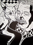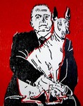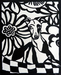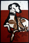 2013Linoleumsnede in twee kleuren met kop van windhond