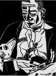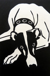 2013Linoleumsnede twee kleuren vrouw met windhond
